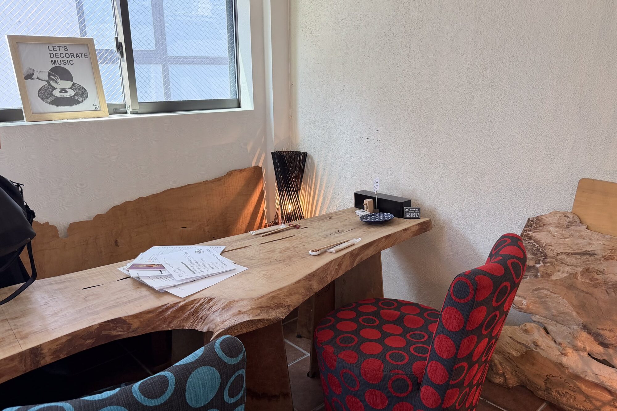 雰囲気のあるおしゃれなテーブルとソファがかわいかったです。