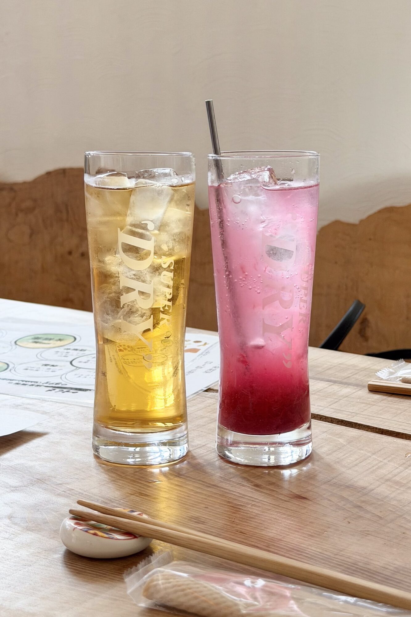 「黄金烏龍茶」(500円)と「しそ漬け南高梅の梅干しソーダ」(630円)をオーダーしました。