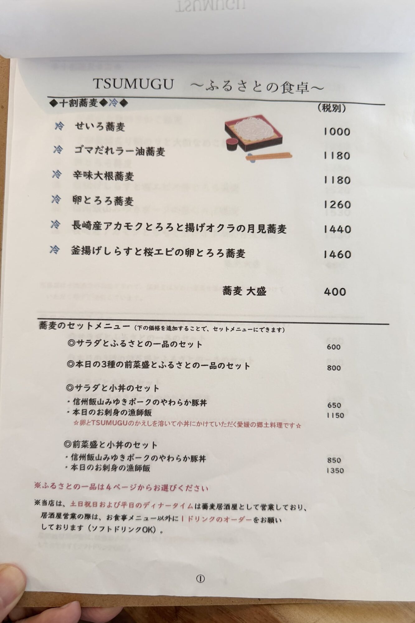 「TSUMUGU」さんは、蕎麦居酒屋スタイルで営業されているそうですが、ソフトドリンクも用意されているので我々お酒飲めない夫婦でも安心。