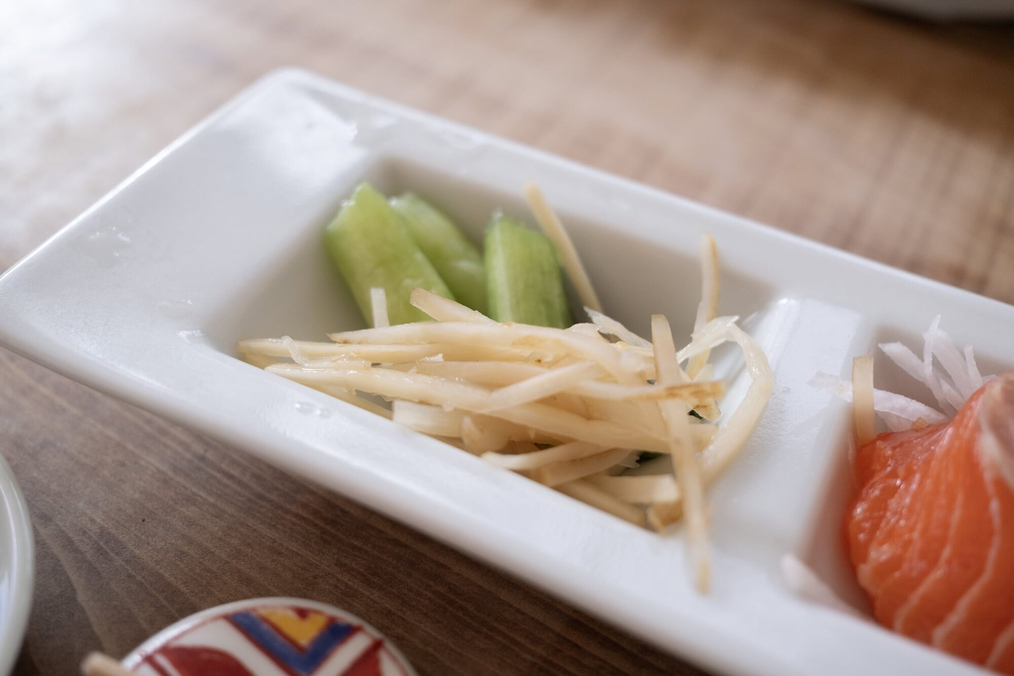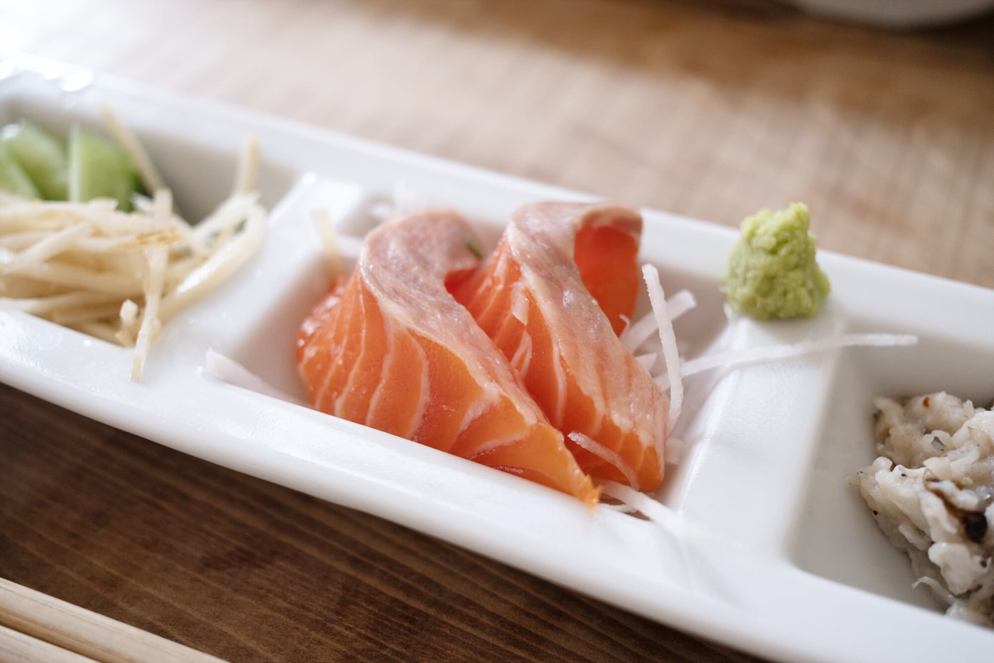 とろけるようなサーモン。わさびとお醤油でキリッとおいしい!