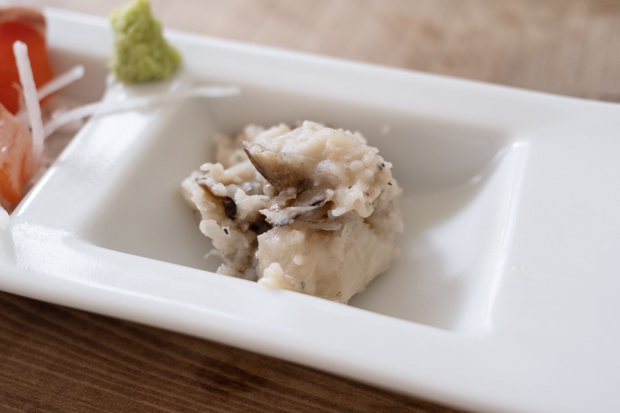 長芋のペペロンチーノ。ペペロンチーノってことは、ショートパスタかな?と思ったら、じゃこがそれっぽく見立てられてるような感じでした。ペペロンチーノ風の長芋、おいしい!