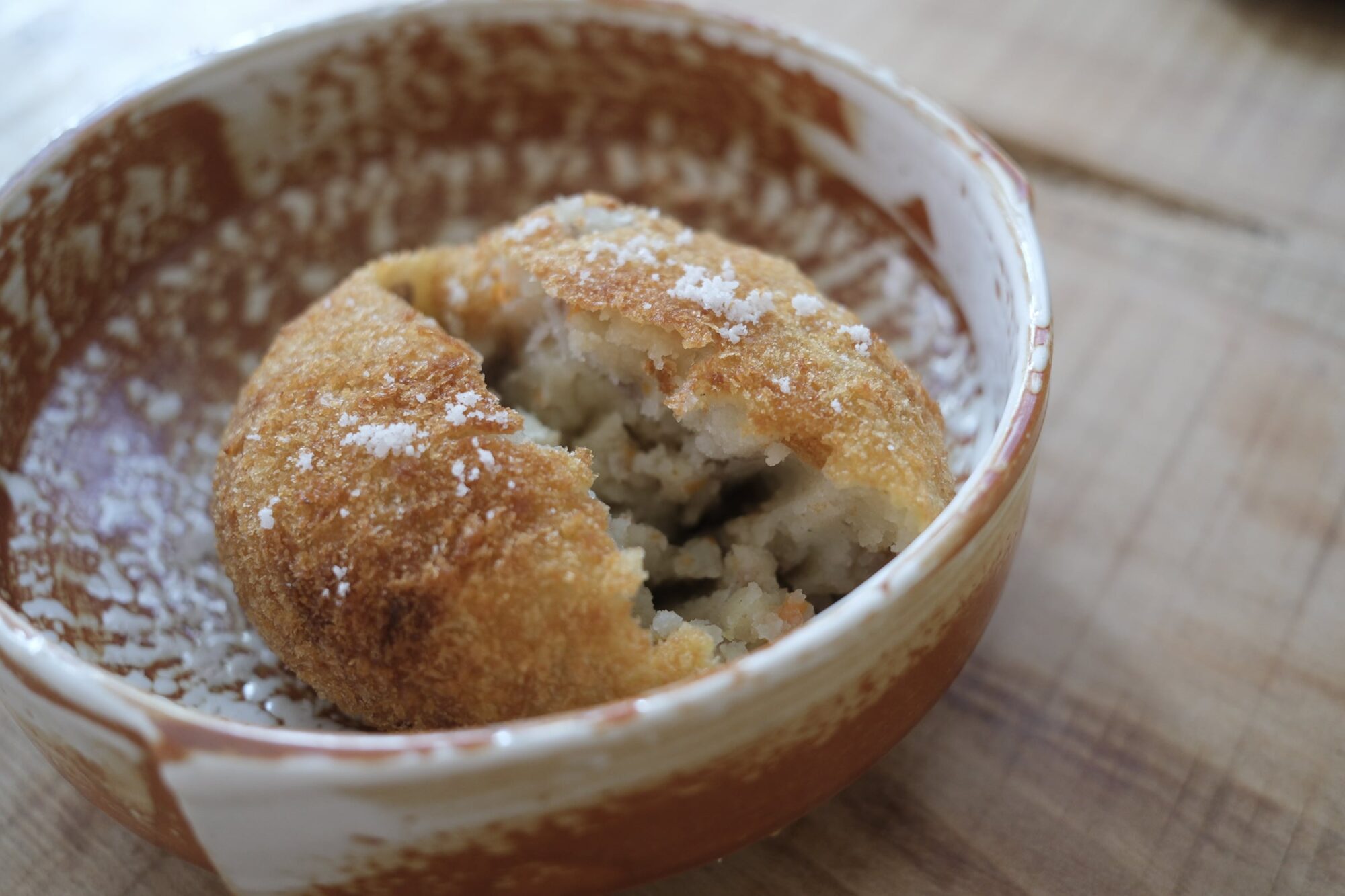 衣はカリッとしていますが、割るとなかからほくほくのじゃがいもが。