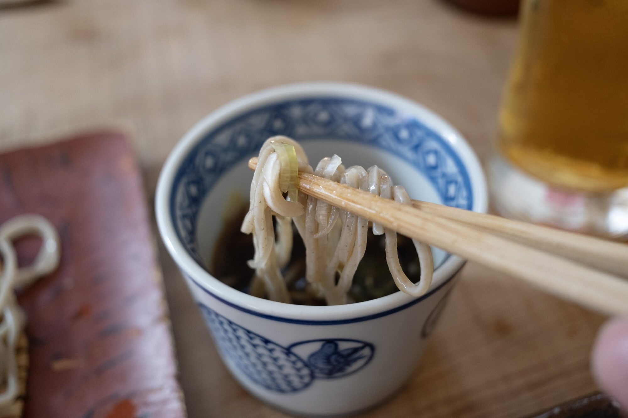 お蕎麦にわさびをちょこんと乗っけて、つゆにつけ、ずずずっと。
