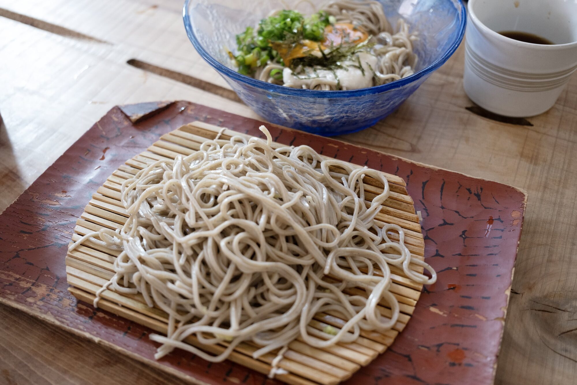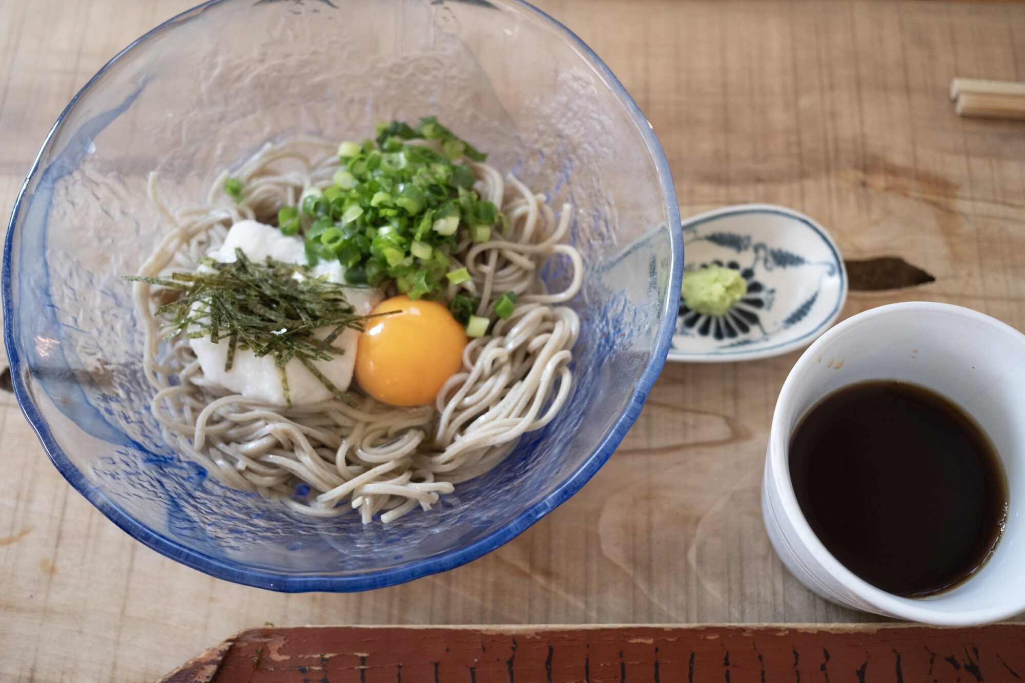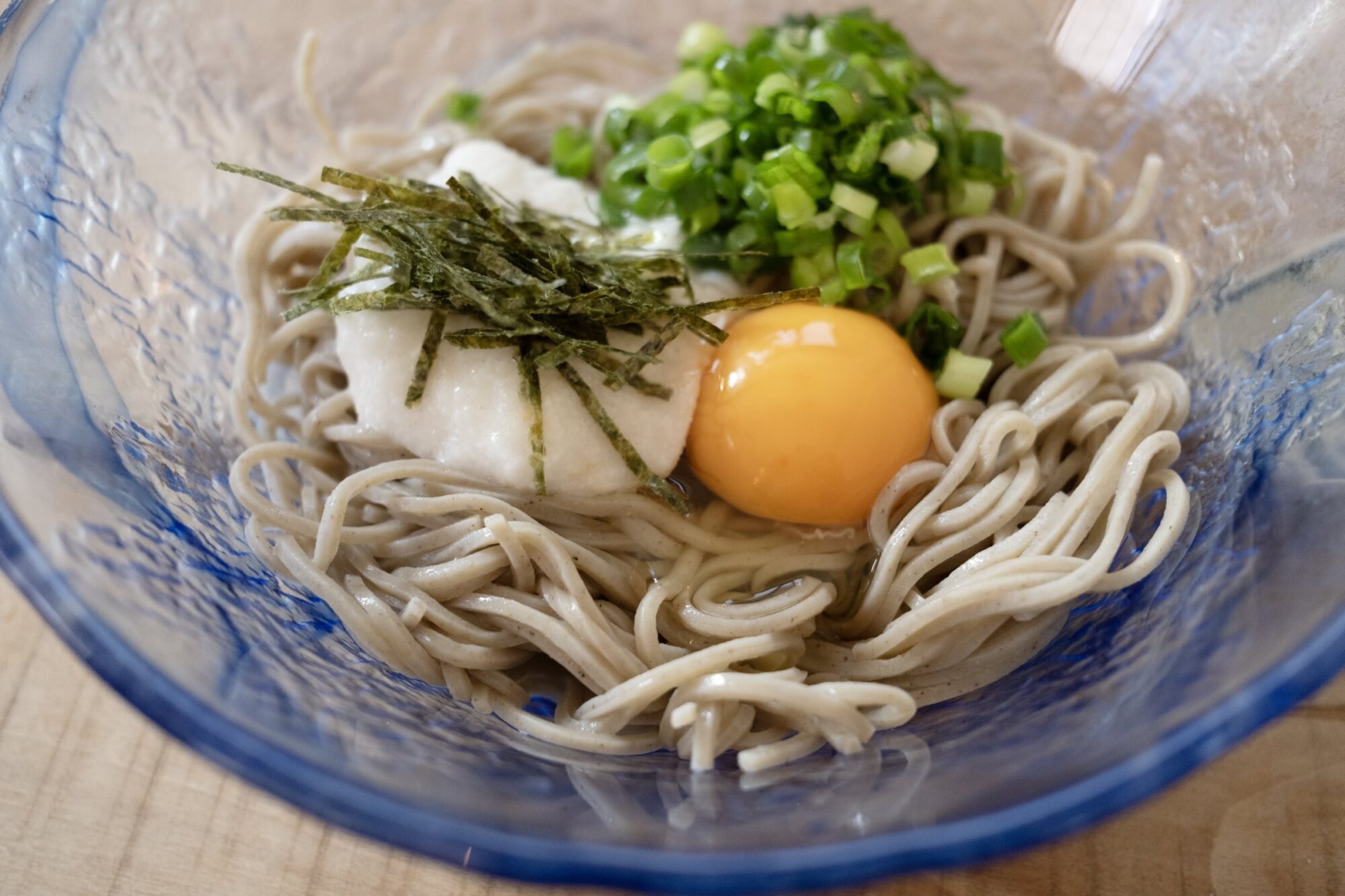 ぼくも少し分けてもらって食べました。とろろと卵でつるつるっと。せいろ蕎麦とはまた違う喉ごしを楽しめて、おいしかったです。